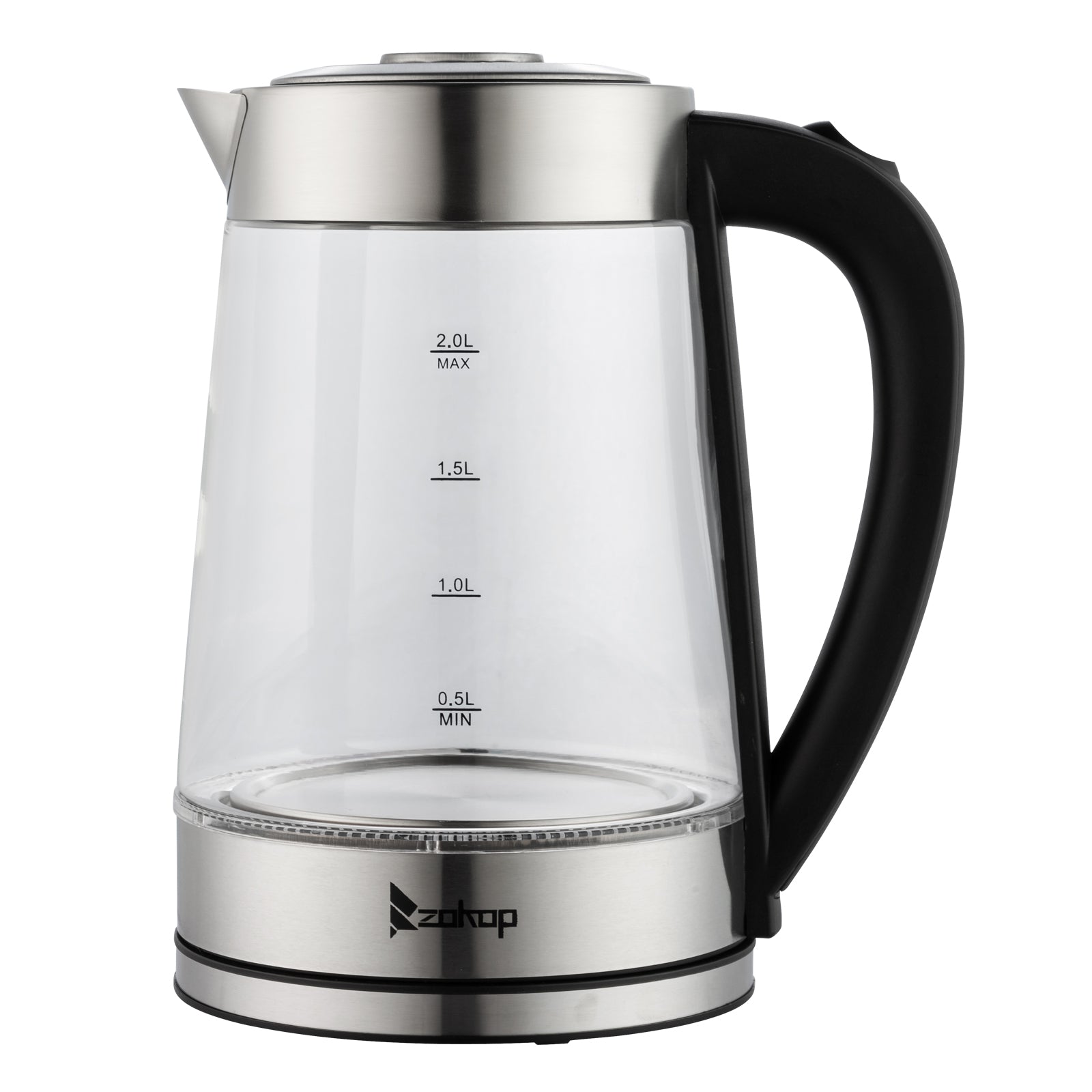 The ZOKOP HD-250 220V 2000W 2L Blue Glass Electric Kettle is the perfect blend of elegance and functionality. Not only is this kettle a beautiful addition to any kitchen countertop, but it also boils water efficiently, saving time and energy over the use of conventional stovetop kettles. Their unique, modern, and stylish design looks great on any counter top. A halo of LED lights beautifully illuminates the pot when it's in use, so it's not only practical, but very attractive to look at. Large pouring spout with mesh filter for perfect, spill proof pours. In a matter of minutes, hot water will be ready to use for instant coffee, tea, hot cereal, instant macaroni, soup, or oatmeal.